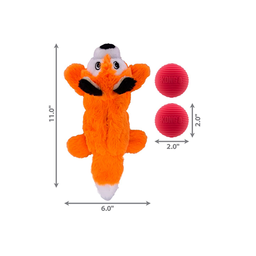 Kong® Cozie Pocketz' internal pouch holds two squeaker balls that entice dogs to puzzle them out, rewarding hunting instincts with more bouncing, rolling fun. Replace balls in Cozie to extend play. Crinkly body extends engagement. Extra-soft plush invites snuggling between rounds of play.